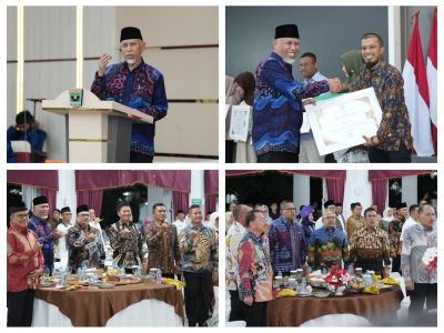 Gubernur Riau (Gubri), Syamsuar memberikan pidato di HUT ke 64 Tahun Di Gedung DPRD Provinsi Riau (Foto Media Center Riau)