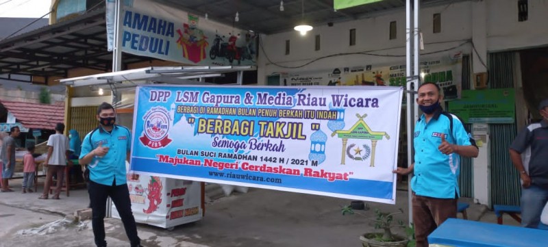 Dalam pembagian takjil tersebut sedikitnya 50 nasi kotak takjil dibagikan kepada masyarakat dengan melibatkan Pengurus Dan Jajaran anggota LSM Gapura . Hadir dalam kegiatan tersebut, Pimpinan Umum Media RIAU WICARA.COM, Syamsir Alam, Ketua LSM Gapura Riau, Jasril RZ, Sekretaris, Miftahul, SY, wakil ketua Ade Irwan SP beserta pengurus LSM Gapura Provinsi Riau.